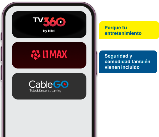 Con tu plan de internet de fibra óptica Bitel, no solo navegas a toda velocidad: también disfrutas de acceso exclusivo a plataformas como TV360, Paramount+, CableGO, L1MAX y protección digital con Bitdefender.