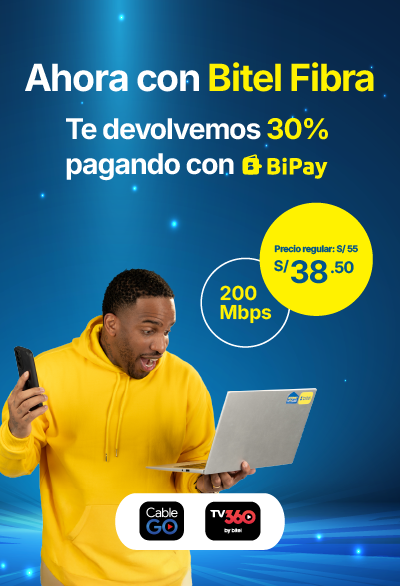 Promoción válida exclusivamente para clientes que hayan contratado los planes Nuevo Bitel Fibra 400 y Nuevo Bitel Fibra 1GB.