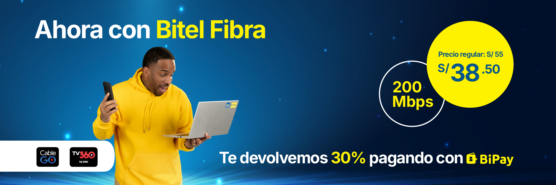 Los planes “Nuevo2.0 Bitel Fibra 200”, “Nuevo Bitel Fibra 400” y “Nuevo Bitel Fibra 1 GB” recibirán las siguientes promociones: