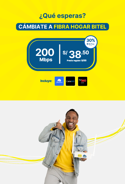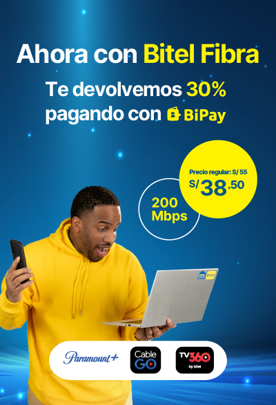 Promoción válida exclusivamente para clientes que hayan contratado los planes Nuevo Bitel Fibra 400 y Nuevo Bitel Fibra 1GB.